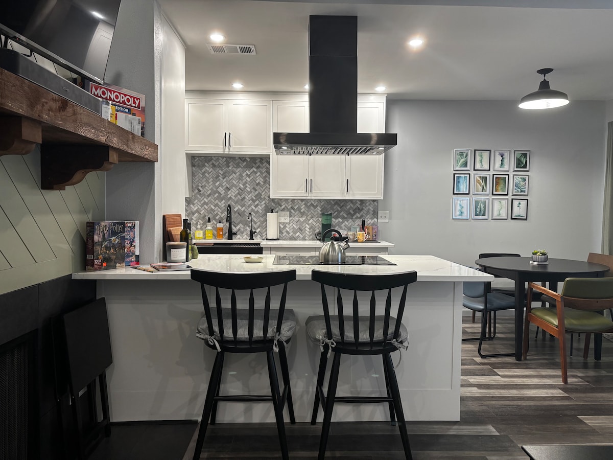 Kick back and relax at this unique, tranquil getaway. Both bedrooms feature brand-new Purple mattresses for an ultra-comfy night’s sleep, and the entire condo has been recently renovated with modern finishes and all new appliances. From the outside, it gives off cozy treehouse vibes—step inside, and you’ll find a sleek, stylish interior perfect for unwinding.