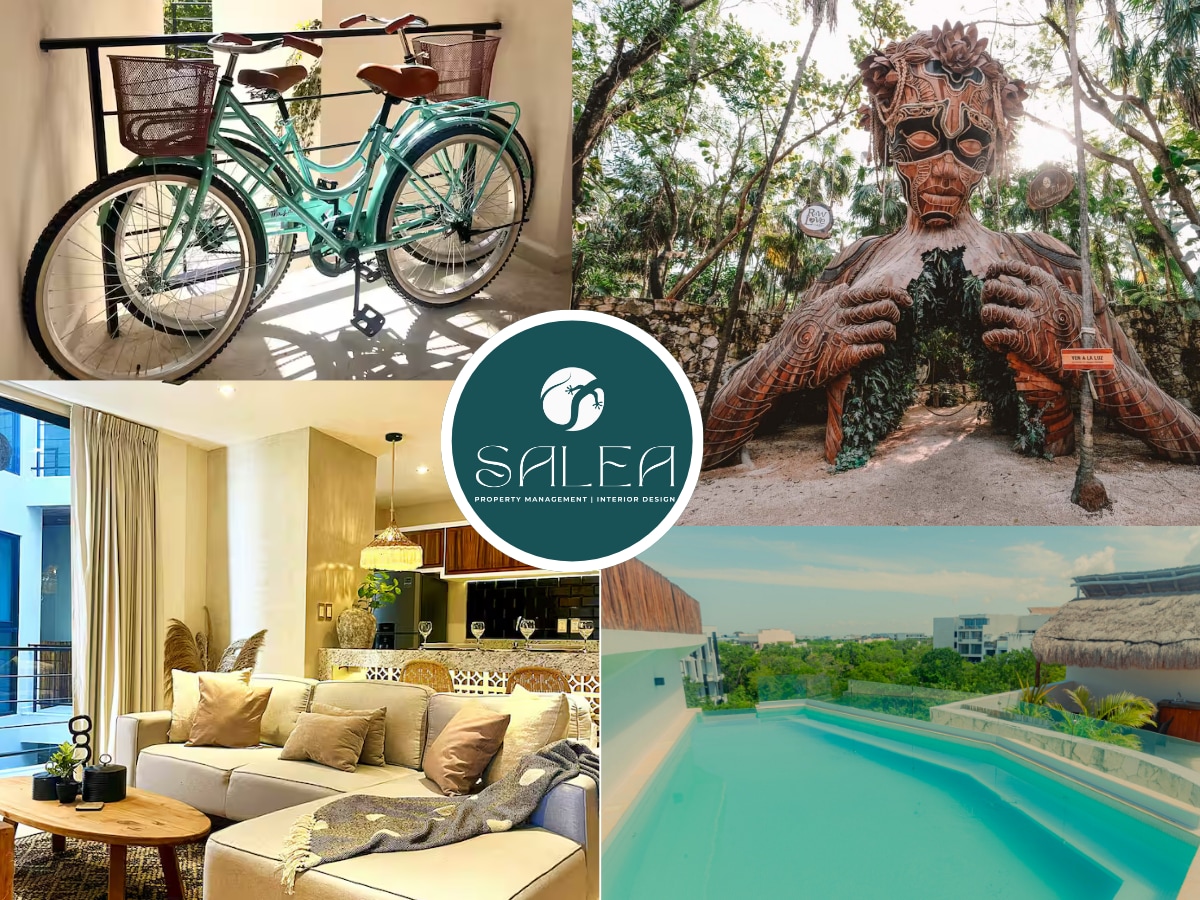 Located in La Veleta, by Car 5 minutes from downtown Tulum, 10 minutes from the best white sand beaches. A brand-new fully equipped apt, ELECTRIC PLANT IN THE BUILDING!!!.... HIGH SPEED INTERNET, WASHER & DRYER, Eco-friendly complex, super EXOTIC. Top-notch amenities and SERVICE. Private Parking, Zen & Yoga space, Bubble Pool, Pool area, Gym, Huge Cenote shaped salt Pool ★ Access at CINCO (Parque Jaguar (extra Fee$) , CASA VIOLETA Beach Clubs with RESERVATION and Minimum Consumption ★
