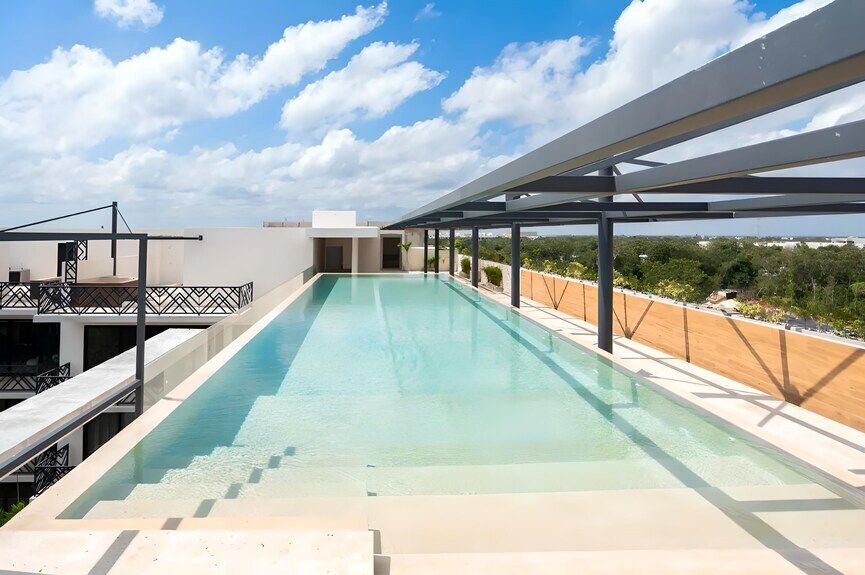 Mun 103 Tulum Zen Residences is a custom designed 3-level building with views of the Mayan Ruins and Tulum National Park. - Retreat to nature, but walk downtown or bike to the beach in less than 10 minutes. - Enjoy the sunsets from the terrace overlooking the jungle - Gym -Jacuzzi -25-meter pool -Yoga area -Open-air cinema -Stay comfortable with hotel-quality mattresses and sheets. TEXT ME NOW to check availability