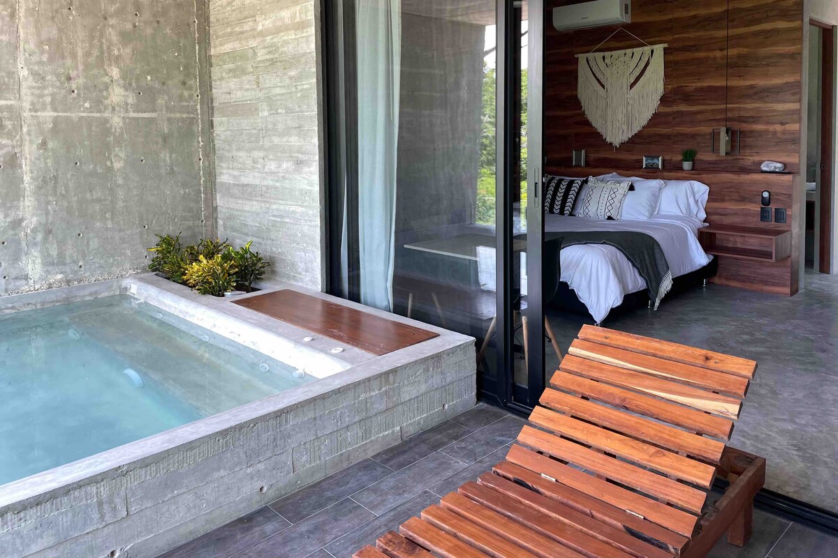 3rd floor loft located in a new secluded area in the jungle of Tulum. Immerse in the in-room plunge pool, have breakfast overlooking the jungle, or work remotely seamlessly with high-speed internet that only you have access to; this is a complex of 8 lofts with an incredible view and unique style. This accommodation is ideal for solo travelers, digital nomads or couples getaway.