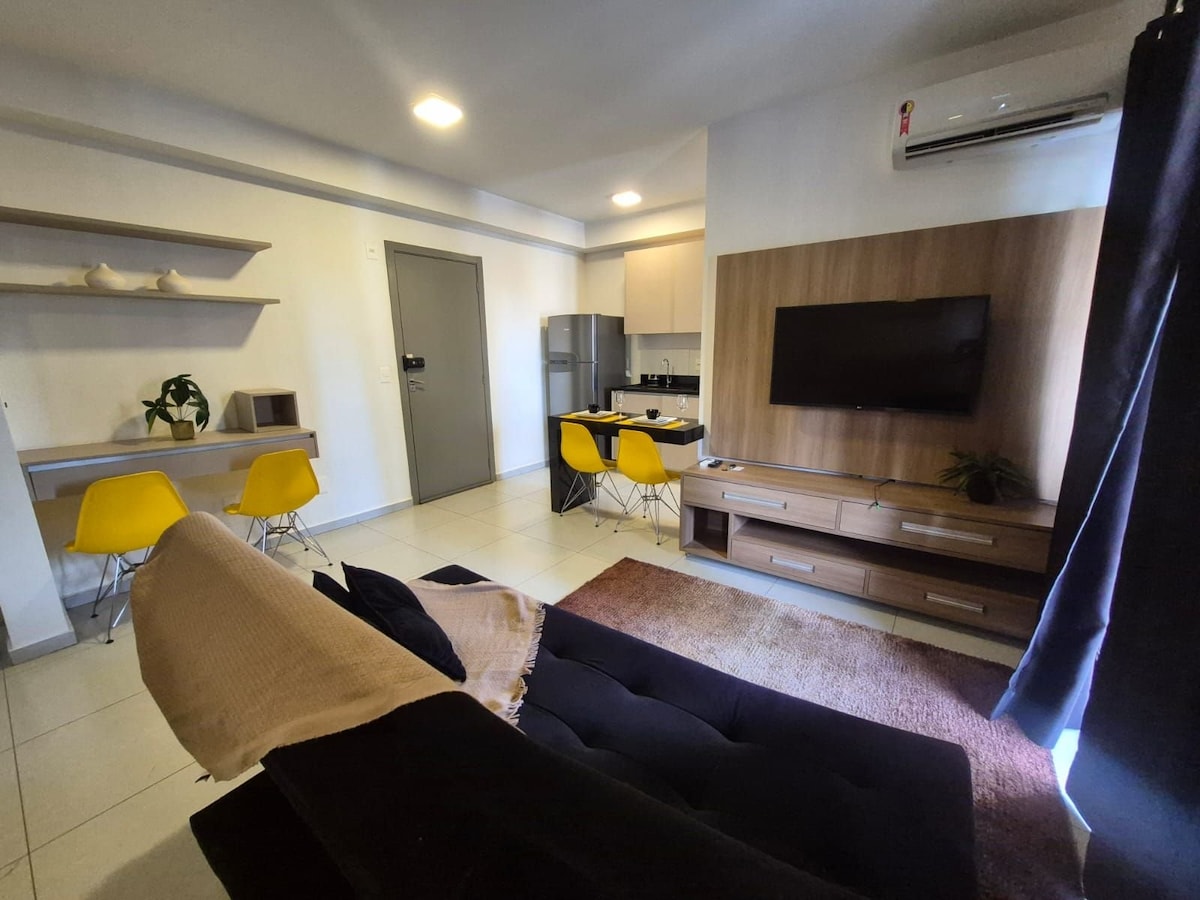 O apartamento está localizado em uma região privilegiada da cidade, e totalmente planejado para a vida moderna, 2 quartos, incluindo um home office adaptado e integrado ao ambiente da sala. Equipado com lençóis e toalhas de luxo, TV , internet, utensílios de cozinha, microondas, geladeira, liquidificador, bebedouro, airfryer, máquina de café, grill, jogo de panelas completo, lavadora de última geração. Ambientes com ar condicionado! Condomínio : home office, academia, piscina, playground.