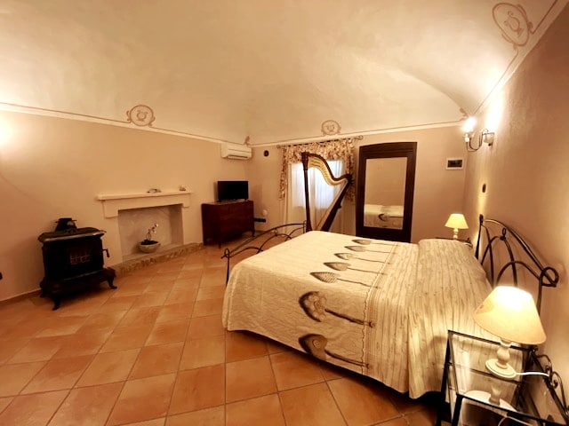 La Giovanna guest room features a sumptuous antique bed that can be arranged as a king or two twins upon advance request, adorned with fine linens, down pillows, comforters, tea/coffee bar, and mini fridge. The suite includes a private bathroom equipped with a rain shower, bidet, pedestal sink, premium toiletries, and soft towels. We offer a total of 4 Suites at La Giardina Guest House, accommodating up to 10 guests. Contact host if you would like to book the entire house.