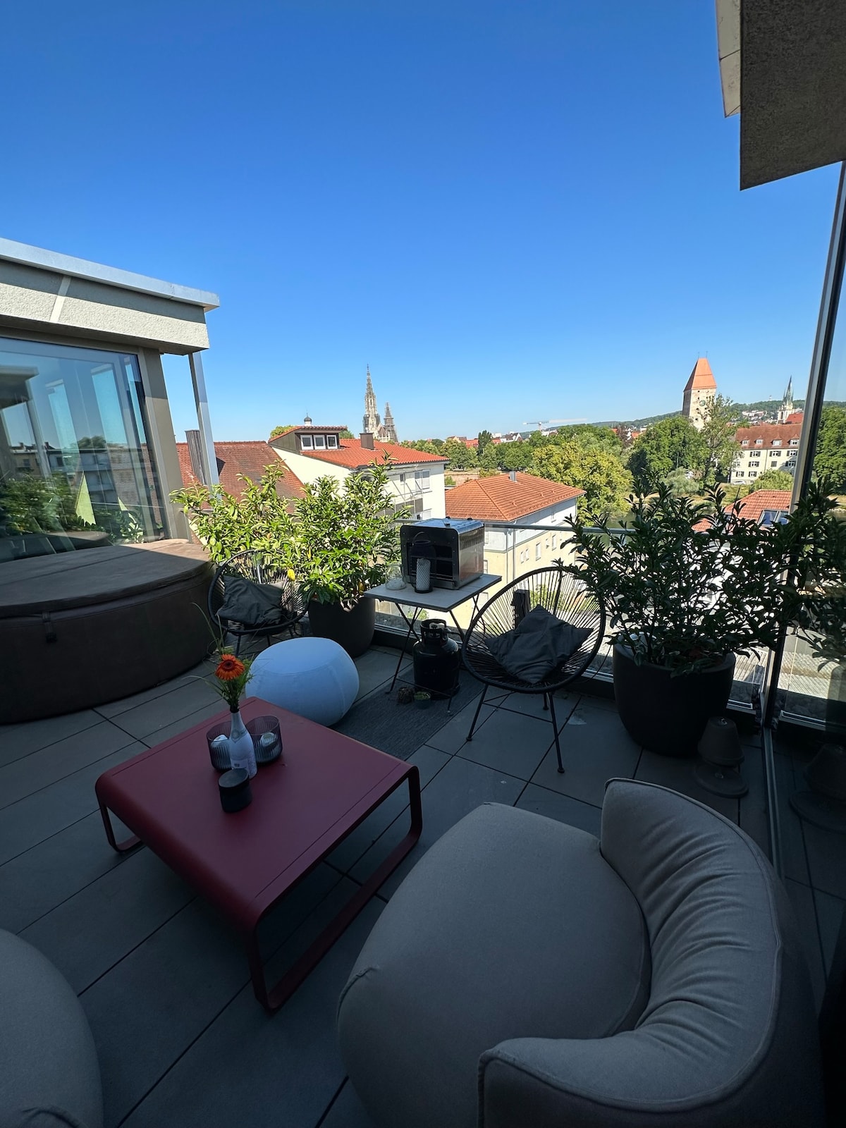 In the heart of Memmingen is our apartment on a quiet street in the Gerberviertel. In less than three minutes on foot along the city stream, you are in the old town and can enjoy the variety of shops, restaurants and cafes there. The train station and bus station as well as taxis are a four-minute walk away.