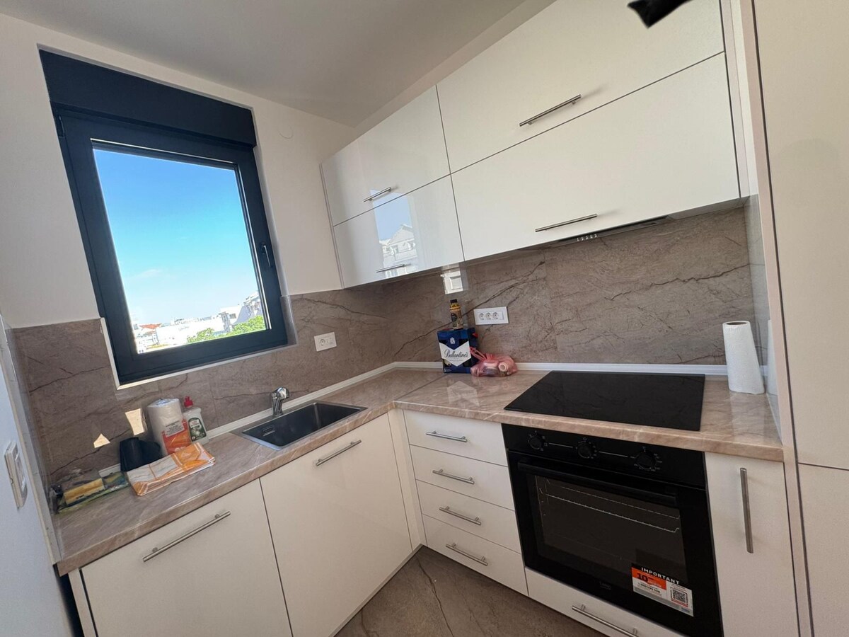 The apartment is full renovated a few months ago and everything is brand new. In the bedroom there is a large comfortable double bed and one big sofa bed in the living room. All in discreet led light. In the kitchen you can enjoy a modern flat-screen cooker, oven, refrigerator with freezer, dishwasher and washing machine and a large bar table. The bathroom is glazed with marble ceramics, it is very compact and clean. The bathroom is equipped with a hairdryer, towels, hygiene sets.