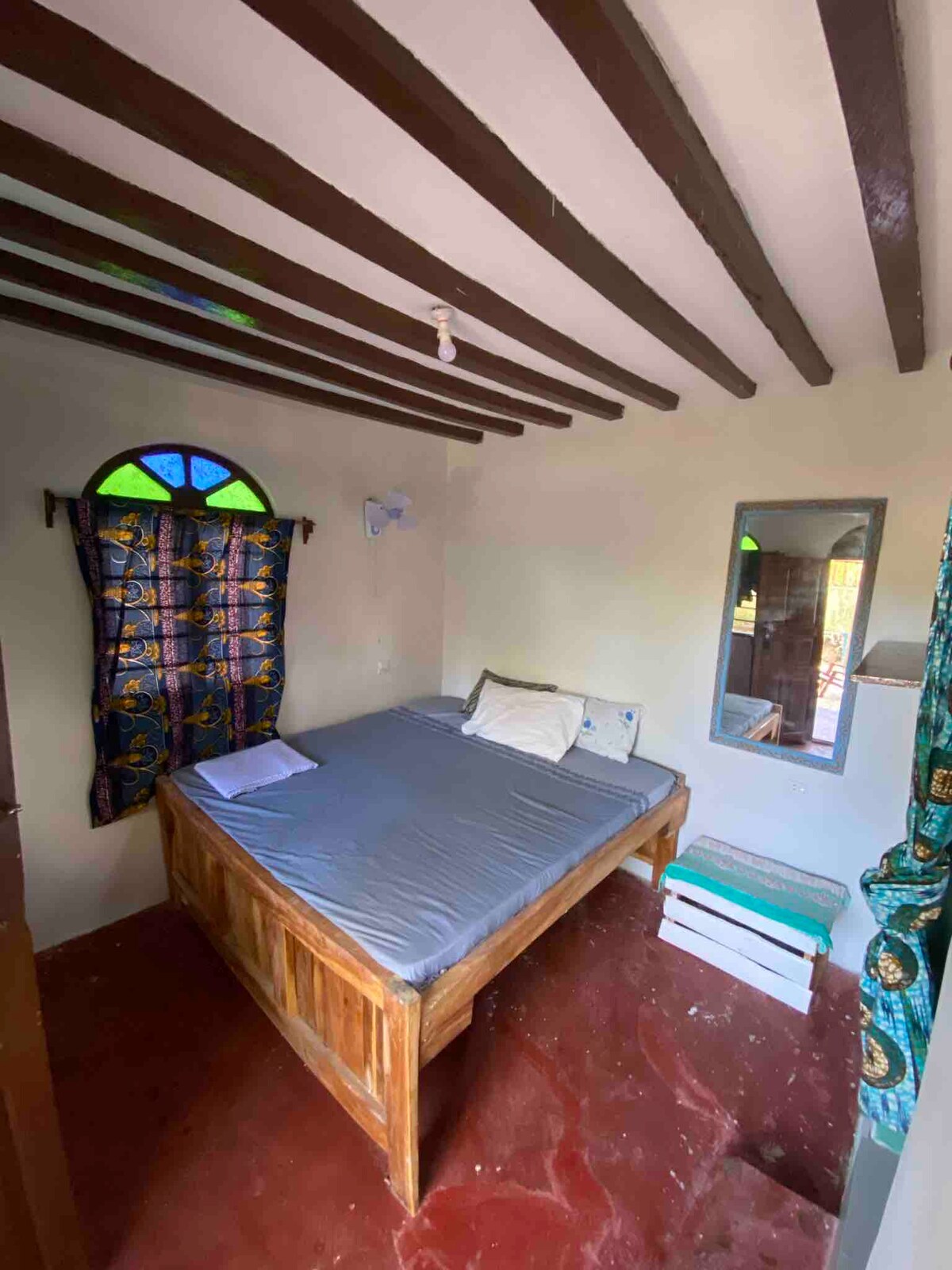 1.5km from Kendwa Beach – A Soulful Hideaway Near, but Not in, the Crowds A calm, spacious stay soul-curious travelers. Just 15 mins from Kendwa Beach, with craft shops and a local supermarket nearby. Here’s what you’ll love: King-sized bed A/C + fan WiFi Walk-in shower with towels, shower gel, shampoo, LED mirror Mini fridge + teas & coffee Desk, reading corner Iron, hangers, darkening curtains, extra toilet paper