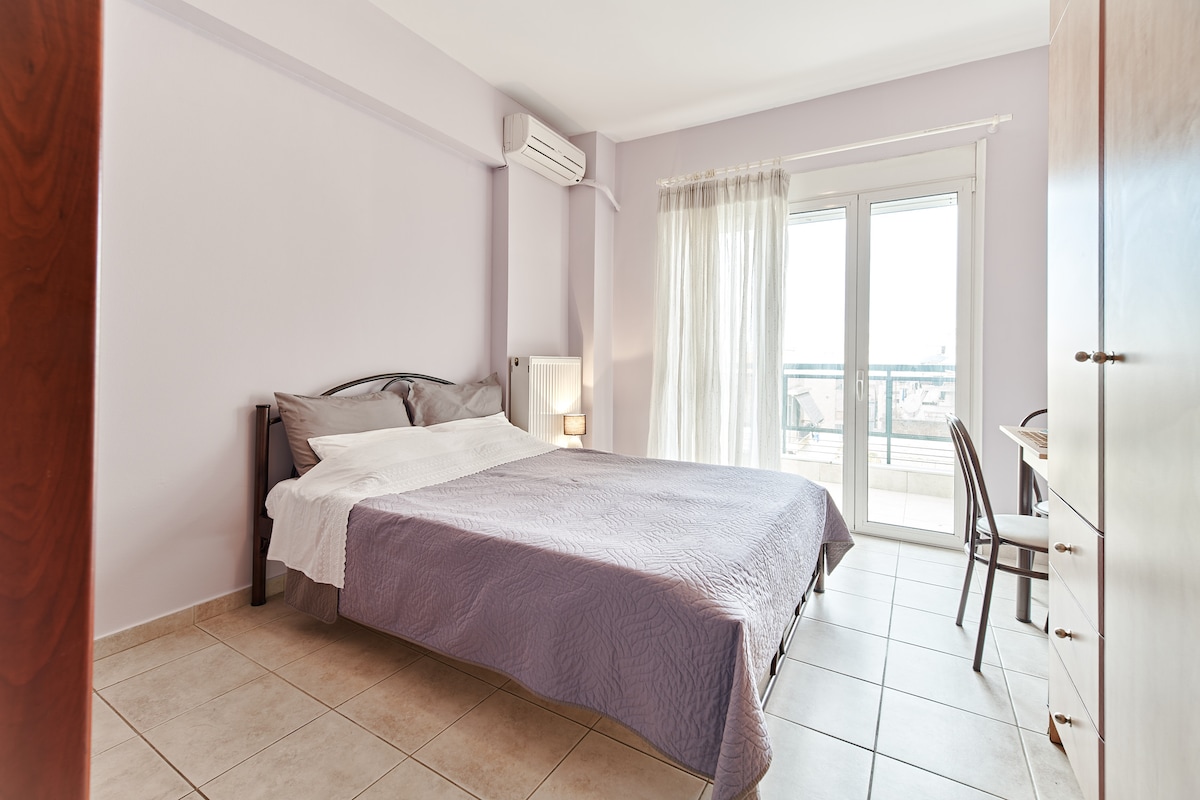 Wake up to sweeping panoramic views of Thessaloniki in this stylish top-floor apartment. Floor-to-ceiling windows and a spacious balcony offer a 360° city-to-sea vista, perfect for sunrise coffee or sunset drinks. Designed for comfort and elegance, it’s your ideal base to explore the city’s heart while enjoying unmatched scenery.