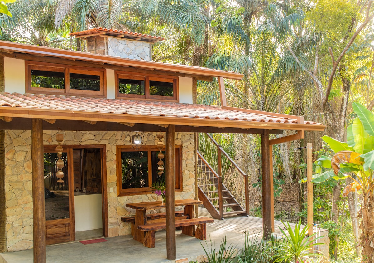 Well-equipped chalet, ideal for 2 people, with the possibility of adding another single mattress. Private pool, full kitchen, bathroom with closet, large balcony, with all the privacy, surrounded by forest with beautiful flowers and fruits. Located on Sítio Labareda, a place that breathes Roça e Arte. Here you will be in a refuge, immersed in nature and close to the village of Serra Grande, the beaches and Itacaré. * We have cats and dogs on site, any questions send a message.