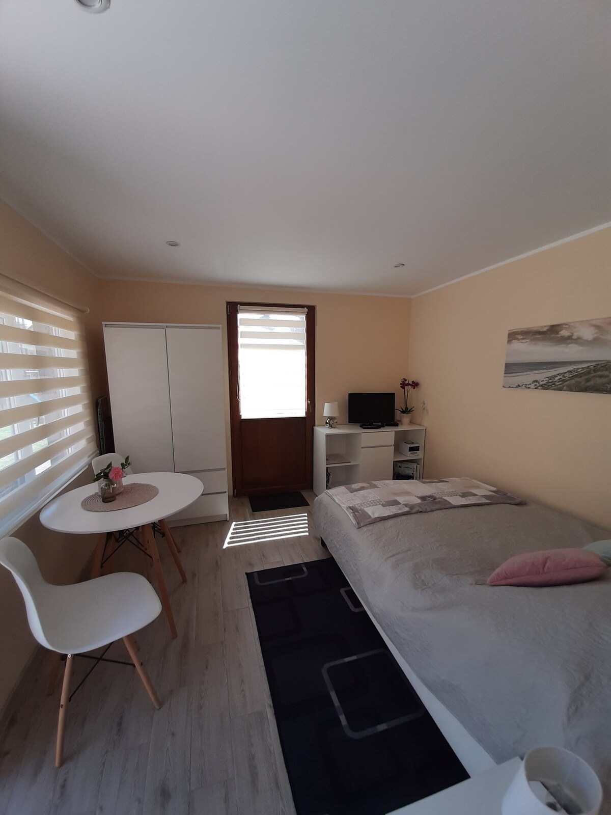 The apartment is spacious, decorated in bright, cozy tones, reminiscent of the seaside climate. There is a well-equipped kitchenette, perfect for preparing meals, a seating area and a balcony where you can drink your morning coffee while admiring the surroundings. In addition, the property has amenities such as a parking space and free Wi-Fi, which make the stay comfortable for both families with children and couples looking for a romantic getaway.