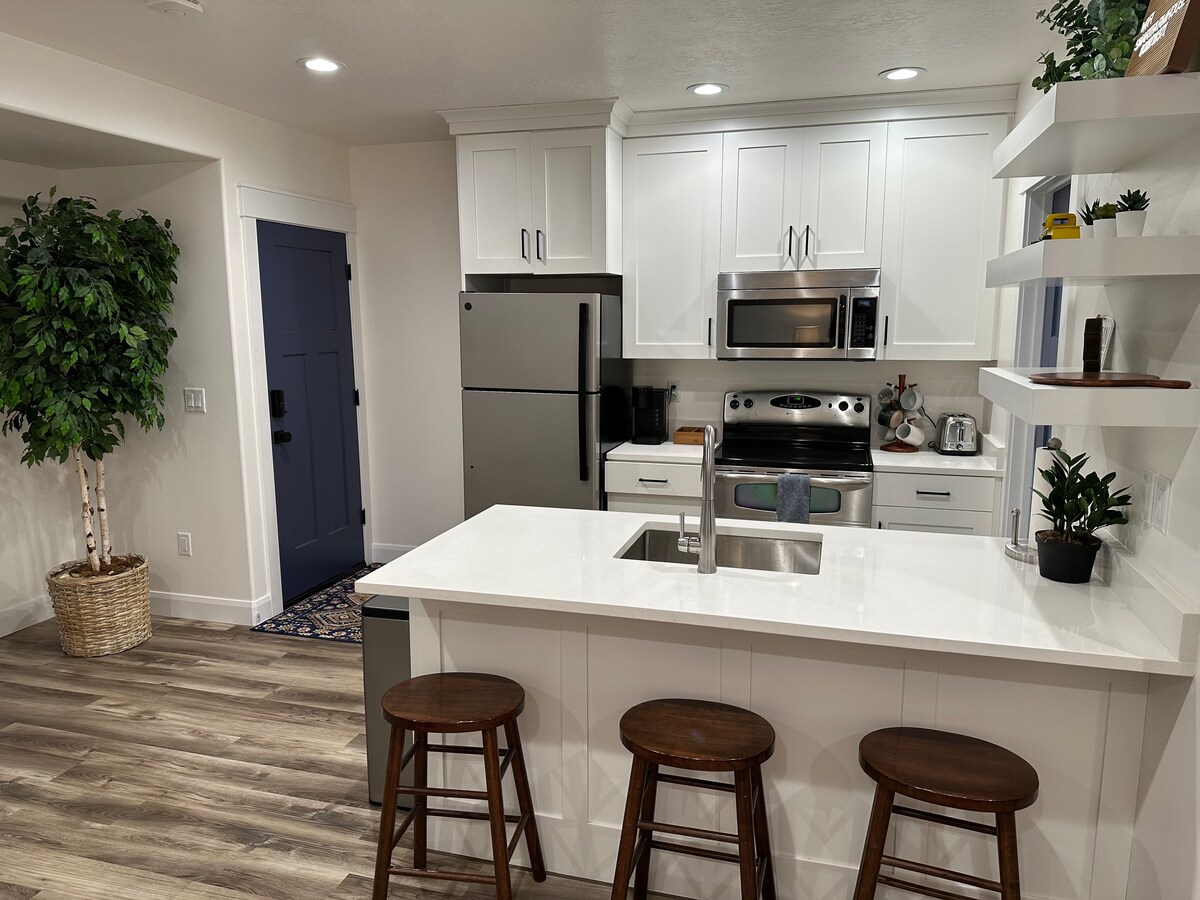 If work, family, an event, or the mountains brings you to Provo stay here! Get a great night's sleep on the spacious King bed and prepare meals in the fully stocked kitchen. →400+ Fast Wi-Fi →2 Smart TVs →Complimentary coffee →Desk to work Downtown- Walker’s Paradise ✔Convention Center 7-minute walk ✔NuSkin 9-Minute walk ✔Grocery Store is across the street ✔BYU 1.4 Miles ✔Utah Valley Hospital 1 mile Ask about our 60 and 90-day promotions! *free in-unit washer/dryer