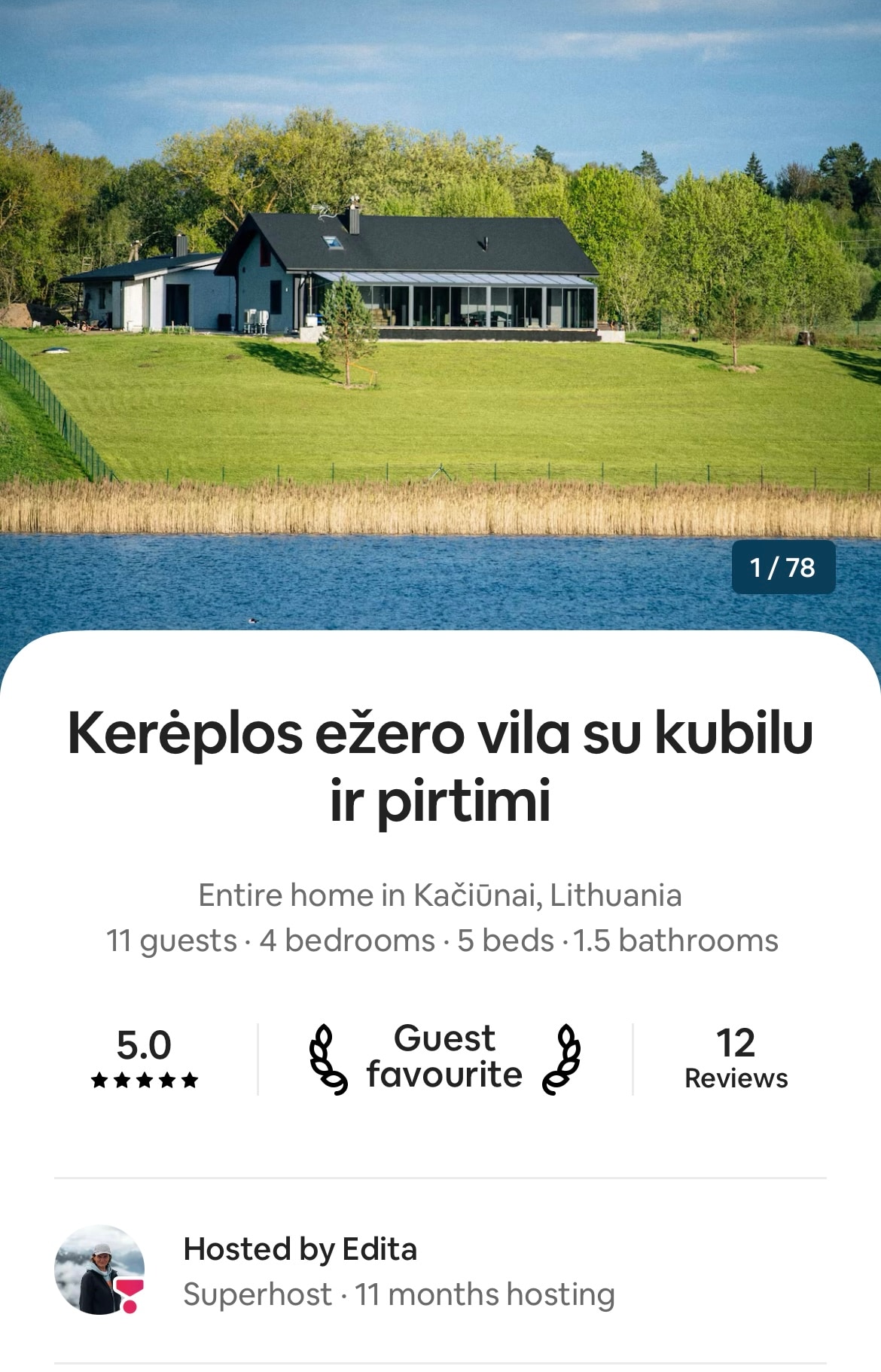 We would love to invite you to experience and enjoy the peace and tranquillity of nature in our beautiful sauna log house. The property is surrounded by picturesque pine forest, private ponds suitable for swimming and lots of wildlife. A paradise for people who like peace and quiet, birdsong, plentiful of fresh and clean air, bonfires, bbq's, not to mention swimming, fishing, hiking, biking or canyoning in the nearby river (Sventoji)…