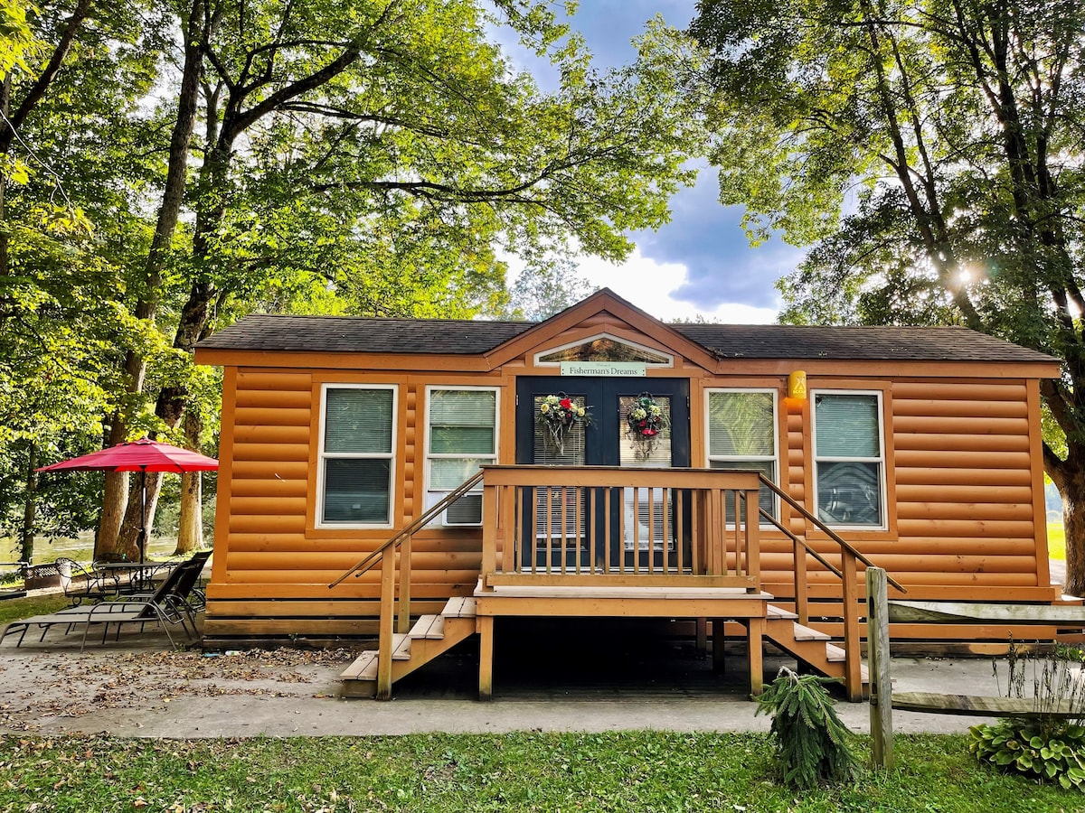 Completely private pet friendly rustic country cabin with Wi-Fi, a private pond, fire pit, and screened gazebo. Cabin sleeps up to 4 guests, one queen bed and one queen pulllout bed. kitchenette with toaster oven, coffee maker, mini fridge, microwave and outdoor grill. Free parking and a big, fenced pen for pets. Only 15-20 minutes from Utica and New Hartford with tons of restaurants and activities. Enjoy a complementary meal from Wendy’s diner included in your stay of 3+ nights!