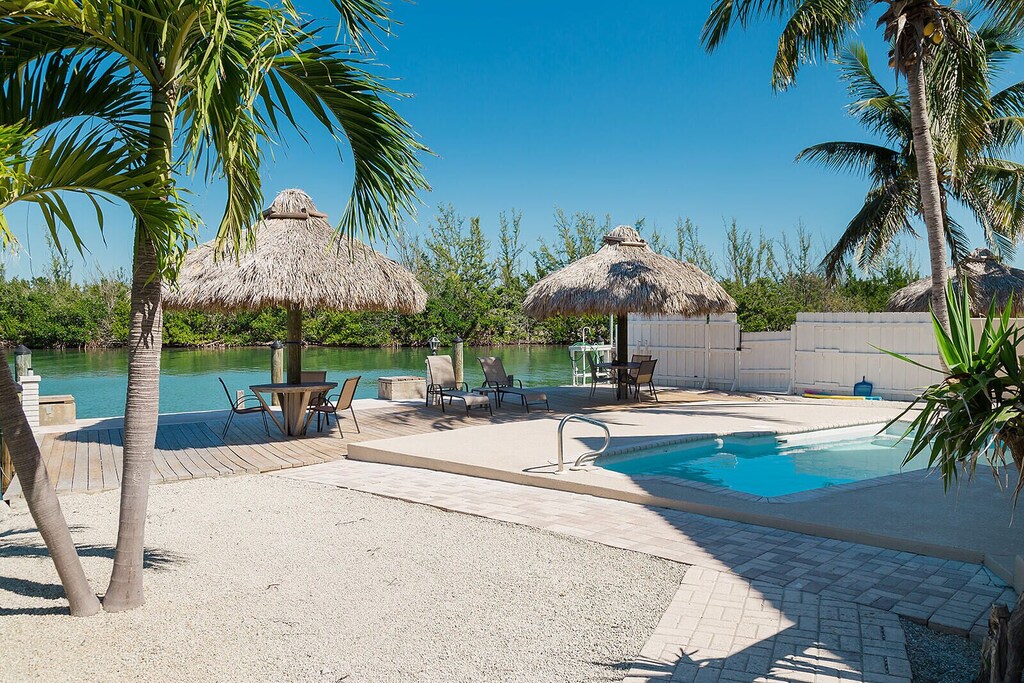Beautiful Brand New 4 Bedroom/3 Bath Family Home can sleep up to 10 with private pool and 40ft dock near Sombrero Beach, shopping & dining! This canal waterfront home is fully stocked and perfect for families or groups to enjoy island living! From fishing to relaxing poolside, this beautifully decorated home has everything guests need for a wonderful stay. The home includes WiFi, smart TV's with cable, towels, kayaks, fish cleaning station, ice machine, freezer and many more amenities.