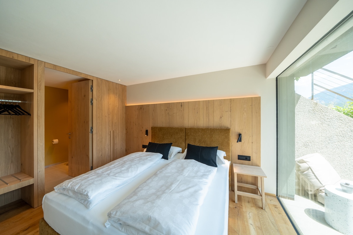 Welcome to our green oasis above Vahrn. Here you are surrounded by vineyards and forests. The Schalderer Bach bubbles in front of the house, the birds chirp in the treetops and you enjoy a fantastic view of the Plose. Enjoy the soothing tranquility, far from the flow of tourists, but still well connected to the city. The four suites are located on the second floor of the building and impress with a shared sauna with a relaxation room and shower.