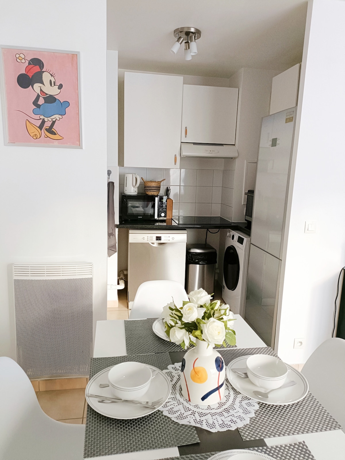 L'Escale Parisienne by AgnĂšs is a cozy apartment for 1 to 4 people, ideal for a stay near Disneyland Paris or in Paris. Included: cleaning, bed linens, towels, Wi-Fi, and toiletries. Located 10 minutes from the park, with shops and bus 2233 right at the buildingâs doorstep.