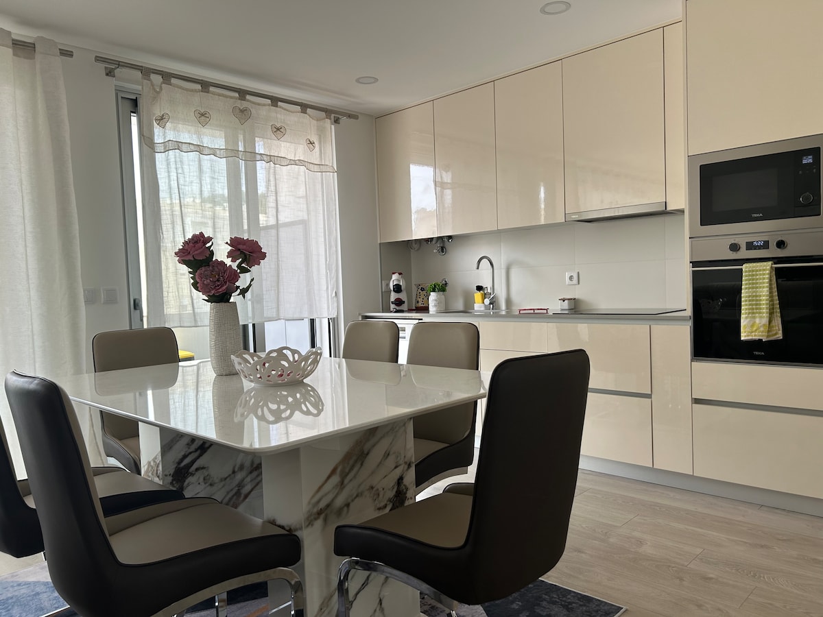 Step onto your all-season balcony — enclosed by foldable glass curtains and seamlessly flowing from the living room — and take in breathtaking panoramic views of the Atlantic Ocean and Nazaré village. From sunrise coffee to sunset wine, you'll be mesmerised at any time of year. This beautifully renovated modern-coastal apartment in Sítio is the perfect base for couples, families, and remote workers.