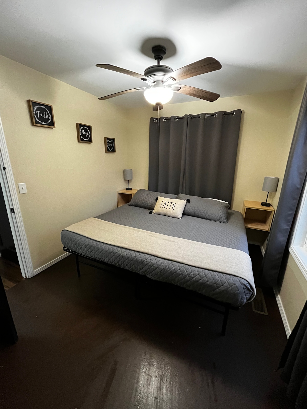 A cozy retreat tucked away in our backyard designed especially for short term & vacation rentals. Perfect for solo travelers or couples, this thoughtfully prepared space includes a comfy queen bed, pull out futon, stocked kitchenette, and peaceful porch surrounded by nature. Enjoy modern comforts in a serene, minimalist setting—just minutes from local dining, Bethel College, and I-135. Experience tiny living with big charm at The Hidden Den!
