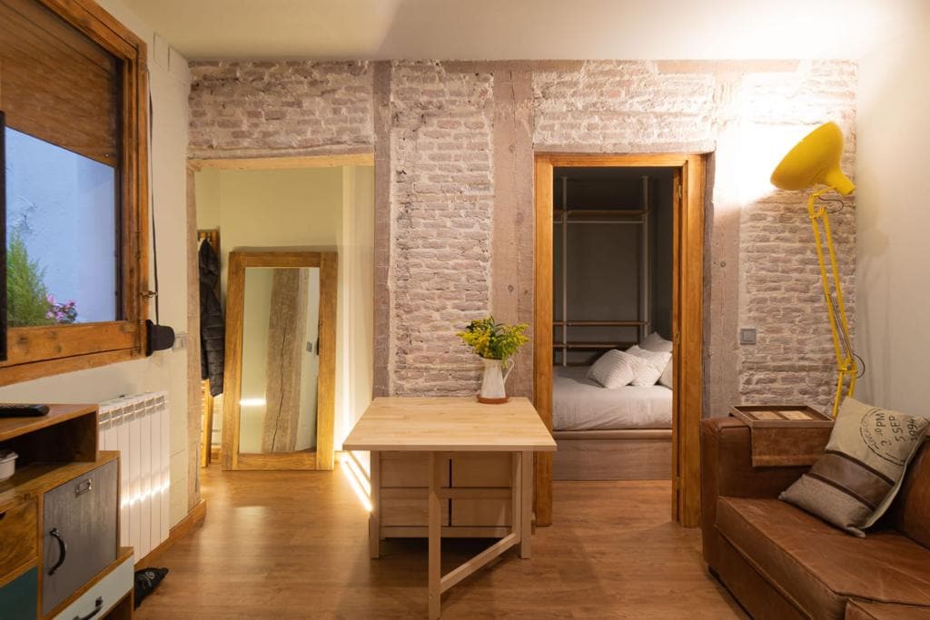“Vine” apartment is located in Madrid center, off Gran Via, on a quiet street in a new building with elevator. It is nature-inspired, bright & modern, has WiFi, is fully equipped and is very close to restaurants, tapas, the Metro, shops & galleries. Best for a single, couples or couples with a kid! Pets are invited happily!!! The apartment is located in a new buliding, with an elevator! It is modern designed, with lots of greenery, themed to its name, Vine. A huge window along the length of the whole apartment overlooks a beautiful private garden. The apartment consists of a bedroom with a double bed, a living area with a single pull-out sofa, kitchen and bathroom. It has WiFi and is fully equipped, including a washing machine, TV, air conditioning, and Nespresso coffee maker - all just ready for your comfort and enjoyment! The apartment is a studio open space apartment - and it's all yours to enjoy! There are no areas in the apartment that you cannot use or access! We love hosting, but also respect our guests' privacy! We are here for you as much as you would like! Located just off Gran Via in lively buzzing Malasana neighborhood with its great range of authentic cafes, tapas & bars. Huge Zara Primark & Mango are minutes away. Best Madrid sites like Royal Palace, Puerta del Sol & Museums are in walking distance The Central Metro Station Gran Via is a 2 minute walk from the apartment. From there you can take the metro to anywhere you want in Madrid and also to all the train stations that will take you out of Madrid to the rest of Spain. If you come by car, a big parking lot is located at Barco 1, Madrid, just a minute from the apartment. There is also a bicycle-rental station close by. A hosting kit of water, soda, milk, coffee, tea and sweetners will be waiting to welcome you :-)