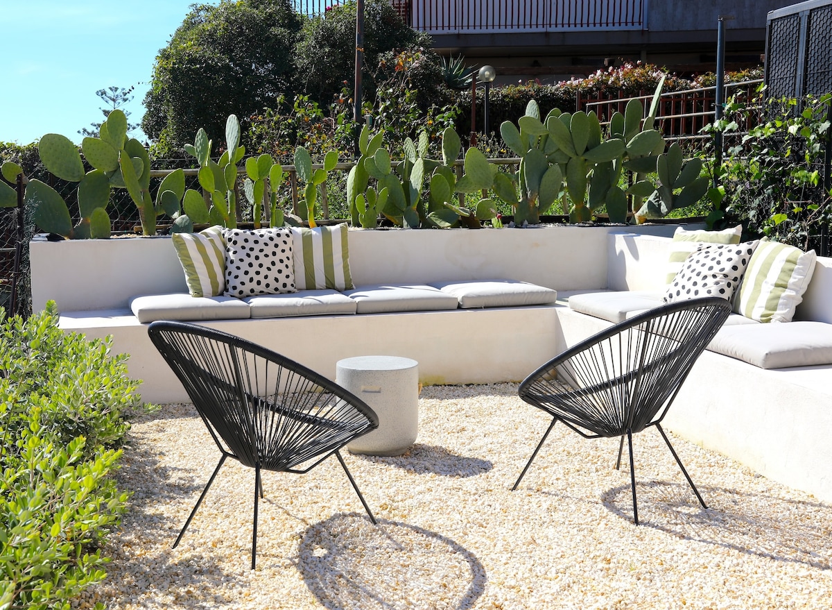 RANKED IN THE TOP 1% OF THE BEST AIRBNBS IN THE WORLD! Maison des Palmiers is a modern, cozy haven for couples or friends. Features include WiFi, AC, self-check-in, smart TV, a great kitchen, and access to a rooftop terrace, a garden and free parking. Perched on a hill in a palm nursery, it's a 5-minute walk to the sea, beach clubs, bars, markets, restaurants, and shops. A safe, relaxing spot that offers a taste of Sicily and the Mediterranean with the comfort and security of home.