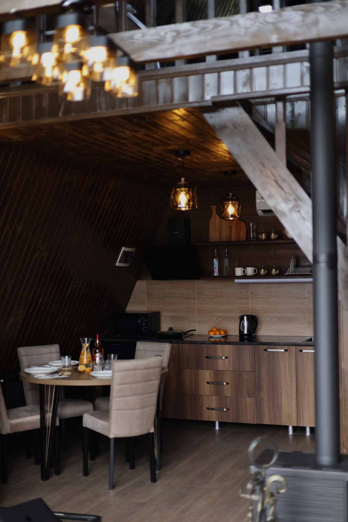 All wooden traditional Imeretian raised house with attached kitchen, garden and forest land. Situated in the village of Sakulia, 25 min drive from the Kutaisi International Airport and 40 min drive from Kutaisi center. The Main House is renovated as a large studio, including bedroom, living room and bathroom areas. Kitchen is an attached building to the Main House and is situated on the ground floor. Compost toilet is nearby the house in the garden. Bathroom has a bathtub and a urine toilet.