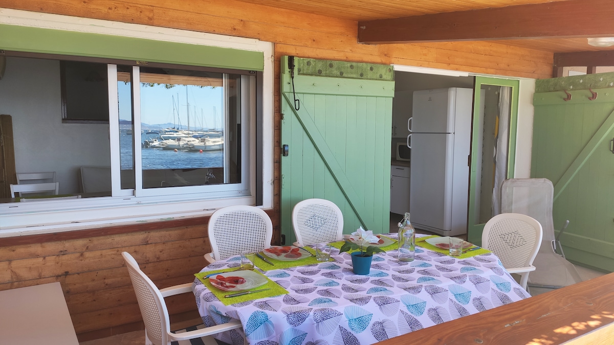 Renovated fisherman's house located on the Giens peninsula less than two meters from the sea. Ideal place for a relaxing vacation by the water that can accommodate up to 6 people. The accommodation is located less than 10 minutes from the beautiful beaches of Almanarre and Badine and a few minutes from the center of Giens and the port of Tour Fondue to reach the island of Porquerolles. Every evening you can have an aperitif from the large terrace while watching the sunset over the bay