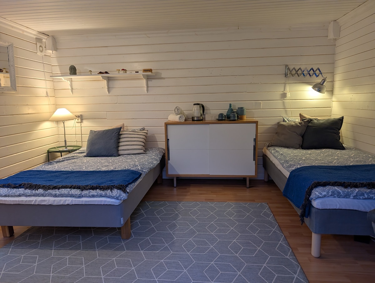 SLEEPING: The bedroom has two beds. Made and ready! FOOD You have access to the kitchen for your own cooking. Grocery store is 3 km north. ”LOUNGE”: Next to the bedroom, is another room; your own little “lounge”, where you can sit and read, contemplate … ADDITIONAL GUESTS: Sometimes I also rent out a room upstairs.
