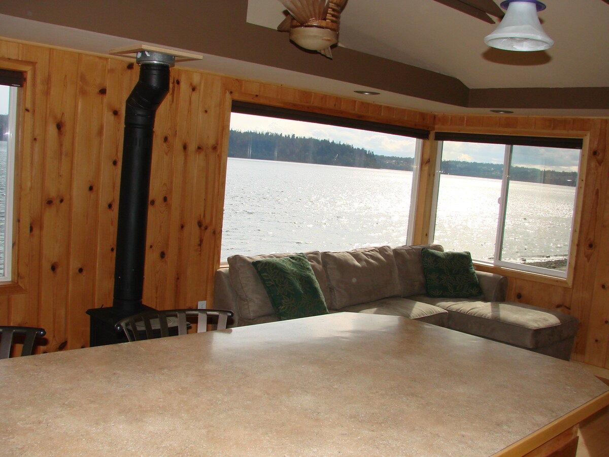 Enjoy stunning views of boats and sleep to the sound of calm water sweeping beneath you, as this incredible house boat sits on top of the inner harbor of Vashon Island! Nestled on a local marina, it is the perfect island getaway. Only a 20 min. ferry ride from Seattle and a 15 min. ferry ride from Tacoma, but you will feel a world away. Experience all day outings with 2 person canoe, hiking and beautiful scenery all within a few steps of the house boat!