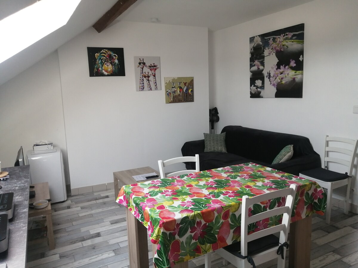 Charming 27 m² studio with mezzanine located in Montreuil-Bellay, close to all shops (restaurants, bakery, tobacco, butcher). The studio has been recently renovated and updated to accommodate you in the best conditions. Bed linen, bath towels, soap, shampoo provided. Château de Montreuil-Bellay 600 m, Saumur 20 min, Bio Parc de Doué 15 min, Center Parcs Les Bois aux Daims 15 min, Futuroscope 1 h, Puy du Fou 1 h 30 min