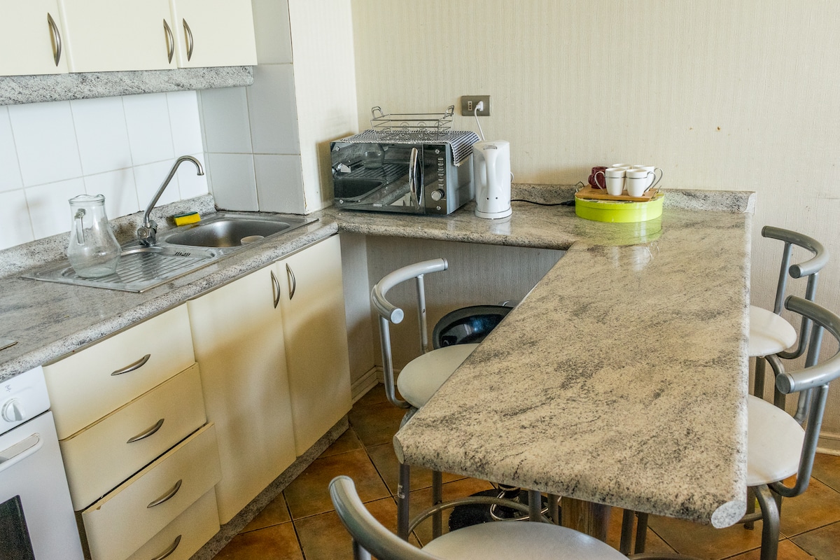 New apartment with parking located in downtown Concepción, VIII Biobío Region, Chile. It is in a prime location in Maipú with Av. Paicaví, with access to the city's main attractions and minutes from large stores and malls, supermarkets, restaurants, airport, bus terminal, clinics and hospitals, banks and universities. Since it is centrally located, you can walk anywhere and have locomotion at the door.