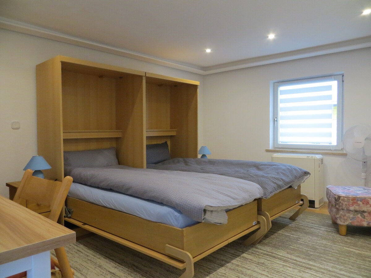 Our vacation home is located in a quiet, idyllic area surrounded by forest and fields, only a few minutes away from Erding. It has a separate, private entrance and accommodates 2 guests. Destinations like the Therme Erding, the Munich Trade Fair and the Munich airport can be easily reached by car. Excellent public transport connection brings you to Munich's Marienplatz within 40 minutes. The S-Bahn train station can be reached by stairs.