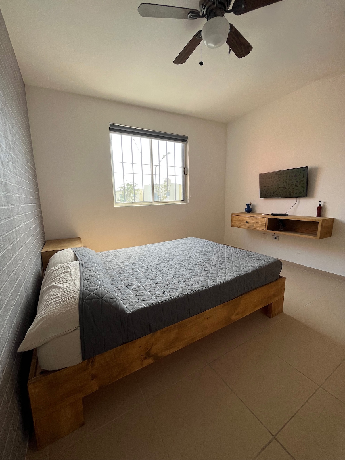 You will experience a cozy and spacious accommodation. Our furniture provides a restful well-being whether your trip is for business or pleasure. You will find everything you need to make your stay pleasant. Fully furnished house, 2 bedrooms, 1 living room, 2.5 bathrooms, 1 walk-in closet, 2 single beds, King size, 1 sofa bed, swimming pool, clubhouse, all amenities, internet, Izzi, Netflix, equipped kitchenette, refrigerator, oven, microwave, washing machine, dryer, TV