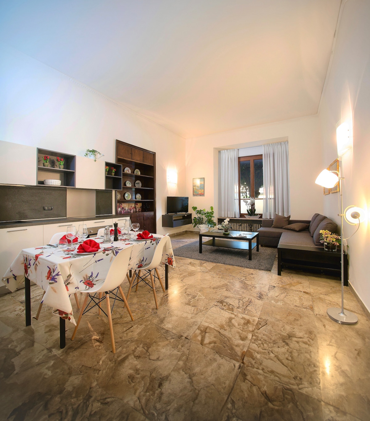 The apartment is located on the first floor of a liberty style house built in the early 1900s, completely renovated respecting the characteristics of the time and divided into 6 apartments for your holidays. The new and vintage-style furniture keeps the slightly retro flavor of the house intact, making each space special and unique. The opening of the entrances is with a code for an easy check-in. We have a space for the shelter of motorcycles, bicycles or other.