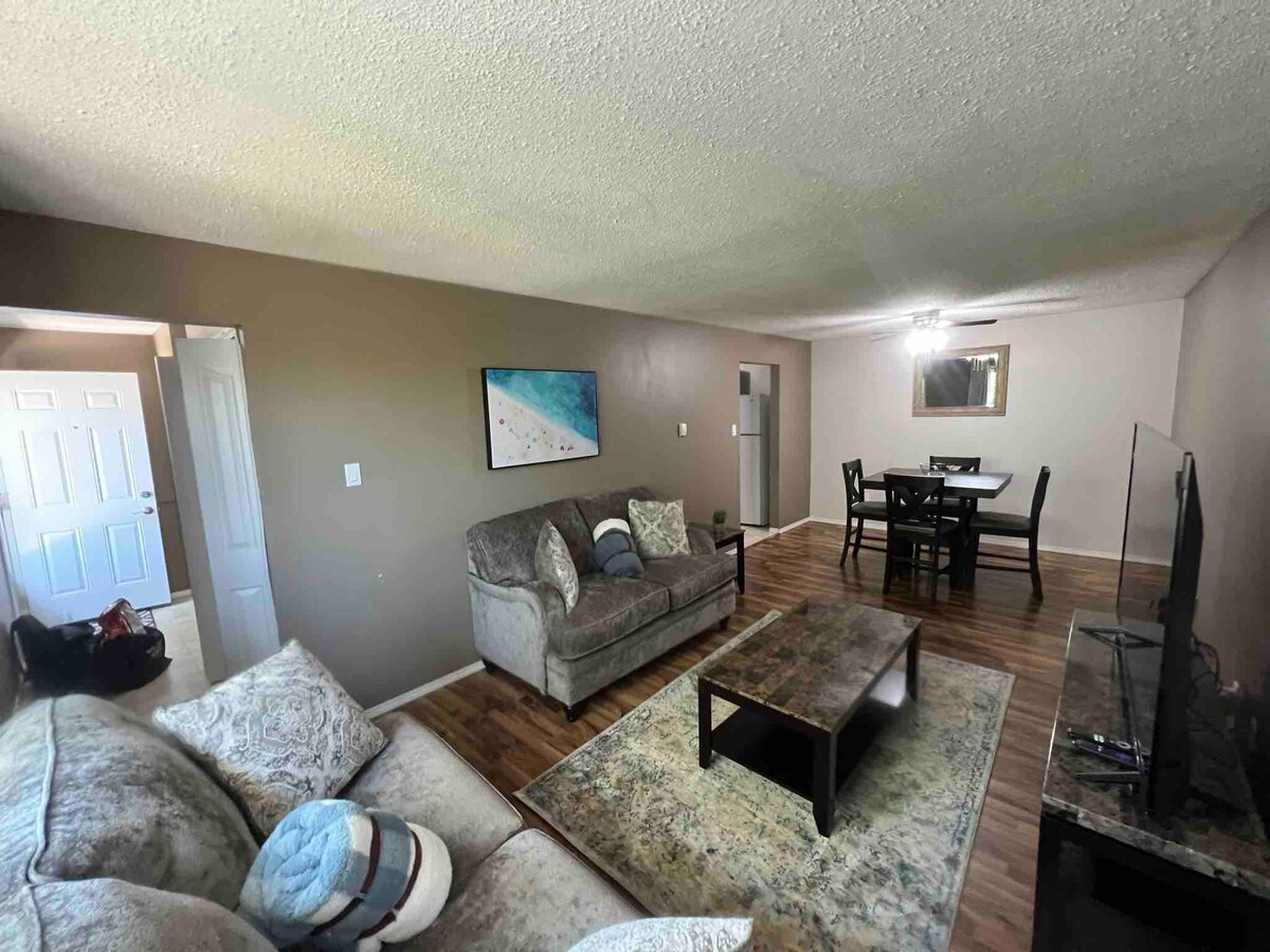 This third floor balcony 2 bedroom unit has everything you need to live and work comfortably during your stay in Lloydminster. It has two Queen Beds with Bedding and Towels Included. It includes Telus Cable with Sports, Internet Router, Comfortable Love Seat and Double Recliner, Dining table/chairs, and a fully stocked kitchen with Dishwasher, Keurig, Microwave, Toaster, Pots, Pans, Cutlery, Utensils and Dishes. We also just put a brand new bath tub, toilet, and dishwasher in the unit!
