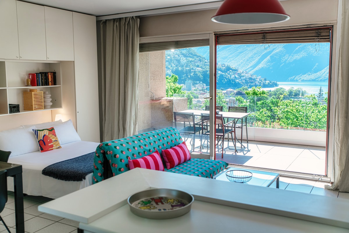 Welcome to our designer apartment in Castagnola, Lugano! Autumn getaway: 2-night stays welcome, relax with lake view and free parking! Enjoy breathtaking views of Lake Lugano. Just steps away from the Olive Grove Trail and San Michele Park. Nearby funicular to Monte Brè. Lugano city center is 10 minutes away with museums, shopping, and restaurants. Easy access to public transport and numerous outdoor activities nearby. A refined and unforgettable stay!