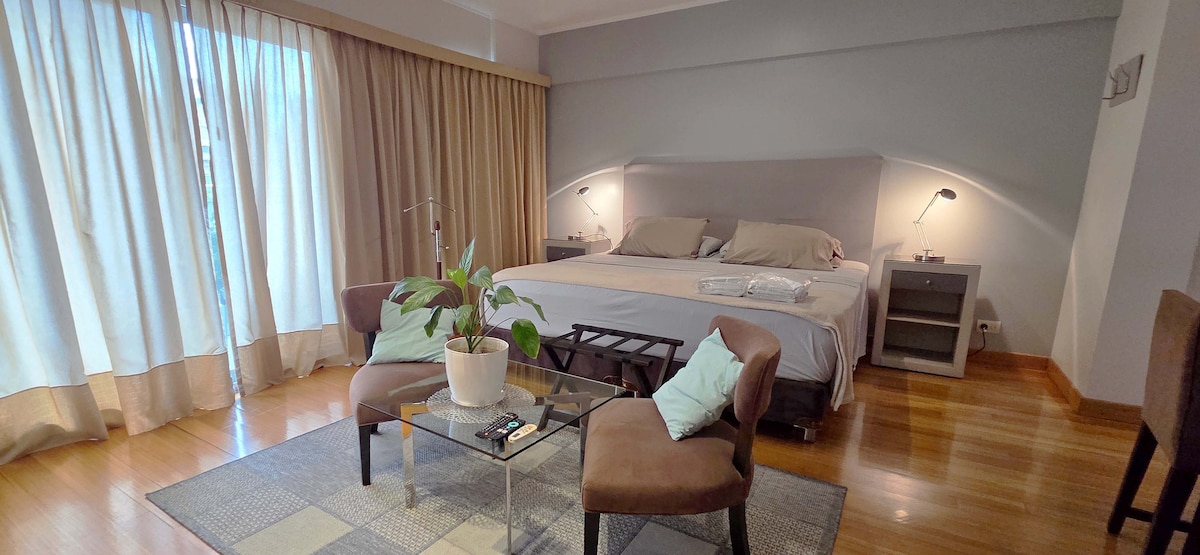 It is a brand new, unique, modern and bright studio located in the heart of Belgrano. Equipped with modern touches and top quality that guarantee a perfect stay. It includes a reclining double bed, luggage rack, fully functional folding table, towels, armchairs on a special balcony to relax, Smart TV, Wifi, A/C, equipped kitchen, microwave, refrigerator, electric kettle and toaster. Full bathroom. Amenities SUM, Meeting Room, GYM, Pool, Terrace with grill, Relax.