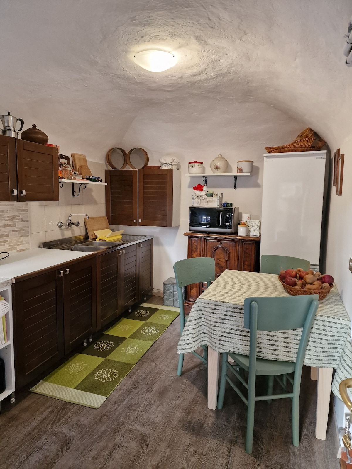 Welcome to the Tavernetta del Chioso: 45 m² on the ground floor all for you. A warm and welcoming environment, ideal for couples or small families looking for relaxation. Brick arches, wooden beams, and stone walls create an intimate and rustic atmosphere. Immersed in the charm of the Biellese Pre-Alps, it is the ideal starting point for excursions or cultural visits. In front of you is Villa Era and 5 minutes away is the Ricetto di Candelo. Not far away are the La Burcina park, the Sanctuary of Oropa, and the Zegna Oasis.