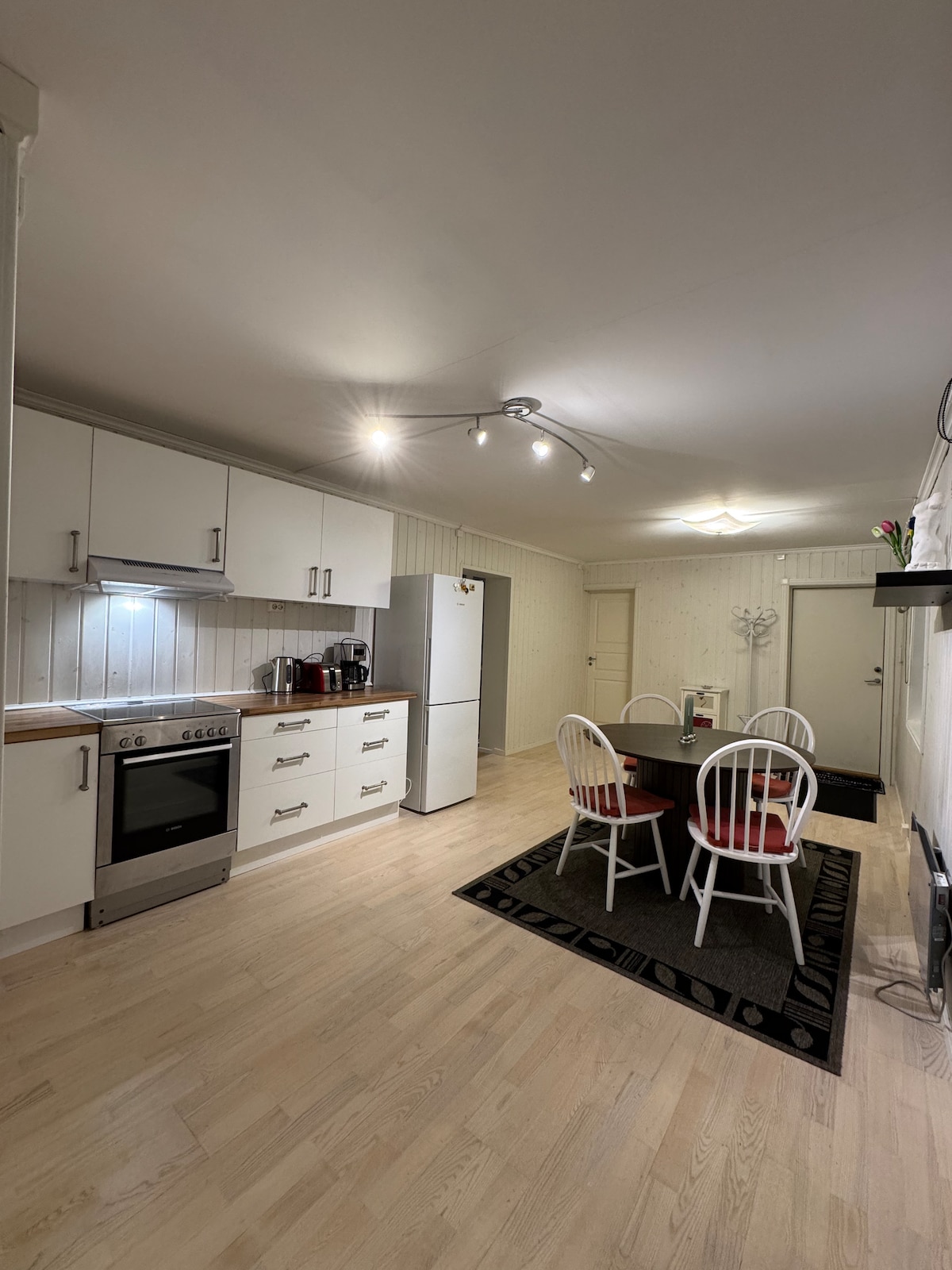 Welcome to a spacious 85 m² (915 sq. ft.) apartment with its own entrance. The apartment has a large kitchen, cozy living room with both electric heating and wood stove, as well as a spacious bathroom. Here you will find two bedrooms with plenty of space, and the living room is equipped with a TV and many channels. Outside, a large outdoor area with nature right outside awaits, and there is a short distance to parks and great hiking areas. Short distance to Tyrifjorden for both swimming and fishing. Possibility to borrow an EV charger. NOK 150 per night.