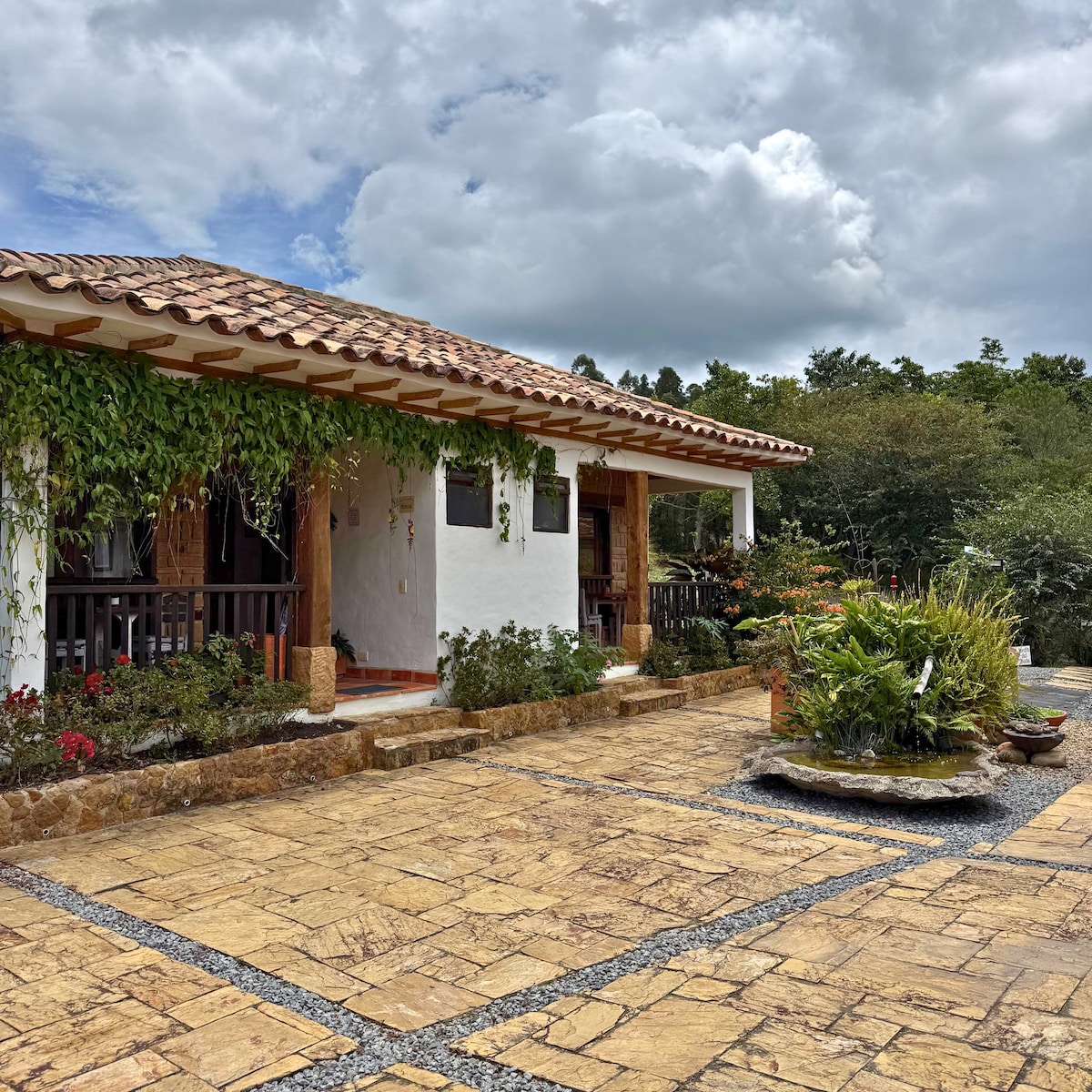 Casa Vientos de Paz is a perfect retreat to relax and connect with nature. Our home offers 3 bedrooms with double and single beds, a dining area, 3 private bathrooms, a workspace, a fully equipped kitchen, an outdoor patio, BBQ area, private parking, and 8,000 m² of green space. We provide fast Wi-Fi, TV, and peaceful spots for contemplation by our lotus pond. Let yourself be enchanted by the serenity this beautiful place inspires. Just 10 minutes by car (3 km) from Villa de Leyva.
