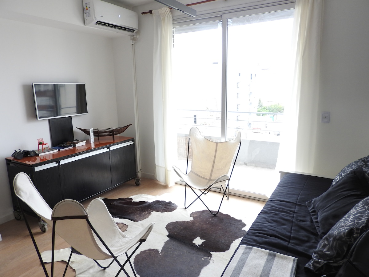 Brand new studio. 49m2. Fully equipped. In the heart of the most attractive neighborhood in Buenos Aires: Palermo. Quiet and comfortable, with a large window and balcony facing the street with sunlight and trees. The neighborhood is vibrant and appealing - you can't miss visiting Palermo if you're in Buenos Aires. The location is very convenient and safe. It's just a few blocks from Plaza Italia, La Rural, shopping centers, Bosques de Palermo, and three blocks from the subway. Wifi: 300mb.
