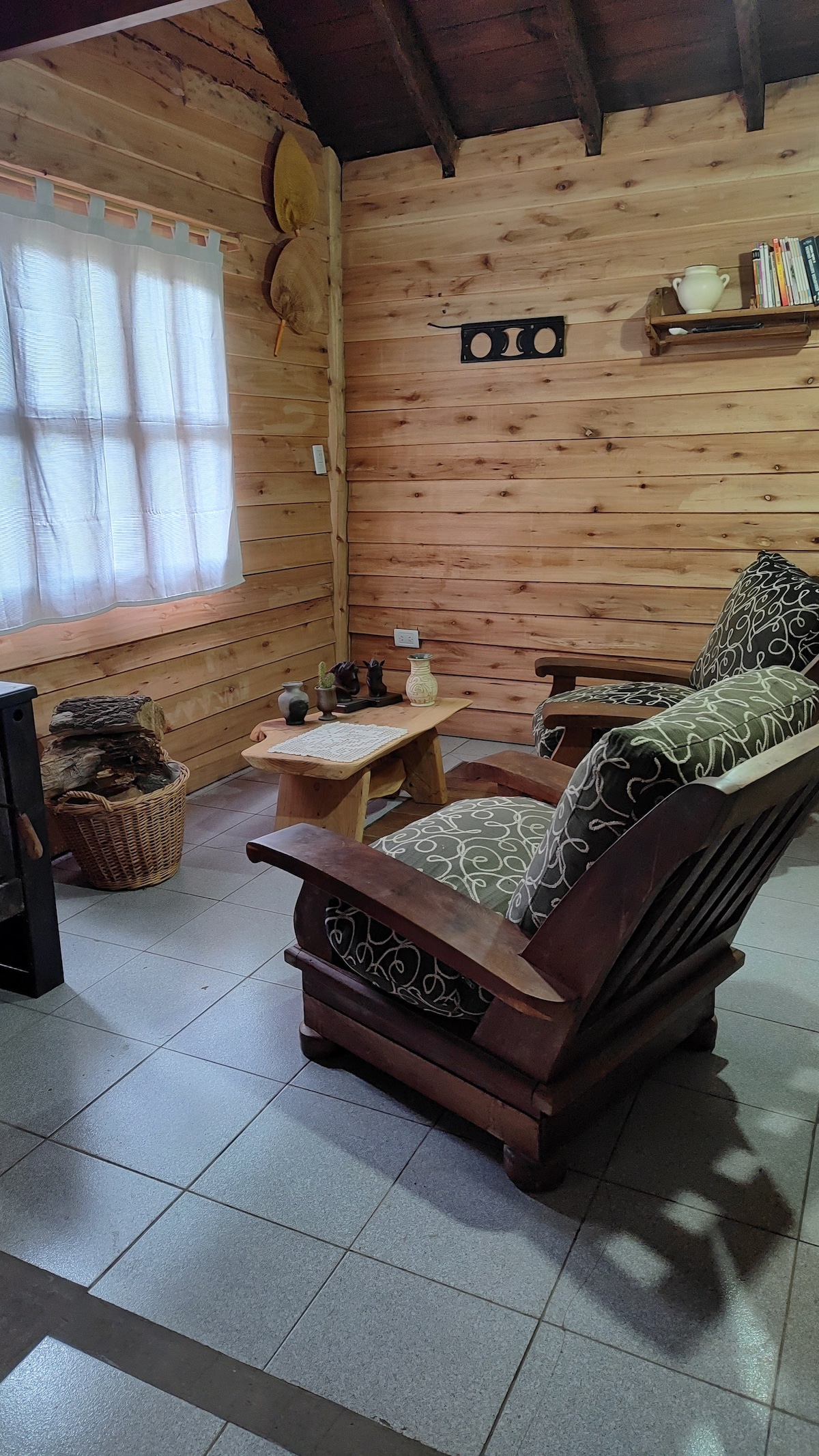 Cabaña construida en tronco muy luminosa y muy confortable. No tenes que compartirla por lo que vas a poder sentirte y disfrutarla como en tu casa.