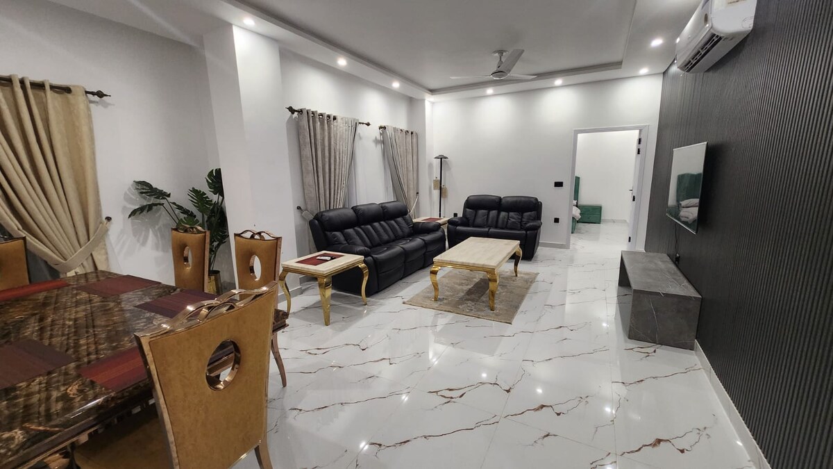 🛏️ King Bed & Private Balcony with Giga view. 📺 55” Smart LED & 30 Mbps WiFi. 🍽️ Modern kitchen with premium appliances. ❄️ Inverter ACs & 💨 automatic air-fresheners. 🔐 Digital locks & elegant décor. ⚡️Electricity Back Up 24/7 🔋 🏙️ Above Zeta Mall, steps from Giga Mall. 🌄 City & hill views. Perfect for families, couples & corporate guests. 🪪 CNIC required (18+). 🚭 No smoking/events. ✅ Book now for luxury & serenity.