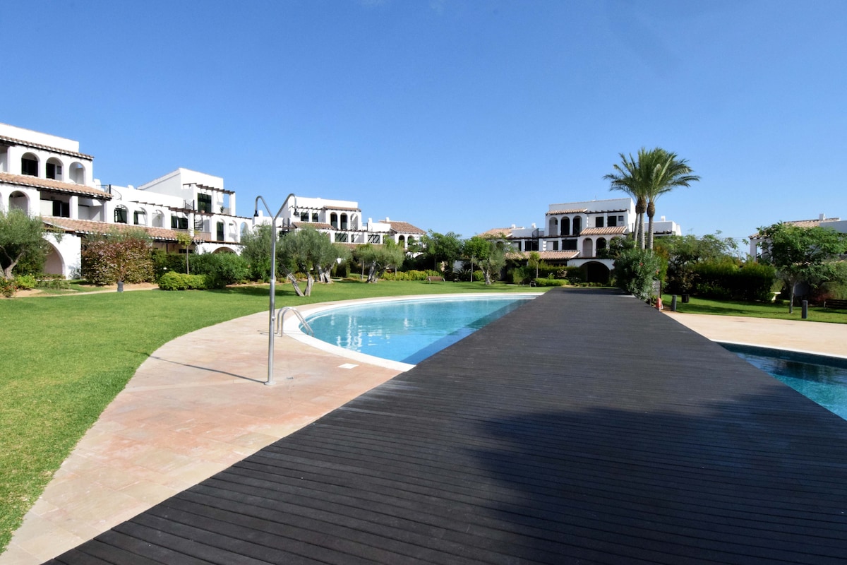 Spacious villa, composed of 3 bedrooms, a dining room and a full bathroom. A garden with a barbecue, table with chairs and sun loungers apart from a space for children to play. There is also another chillout type environment. Located in a very quiet residential complex with a supermarket 200 meters away and the beach 300 meters away.