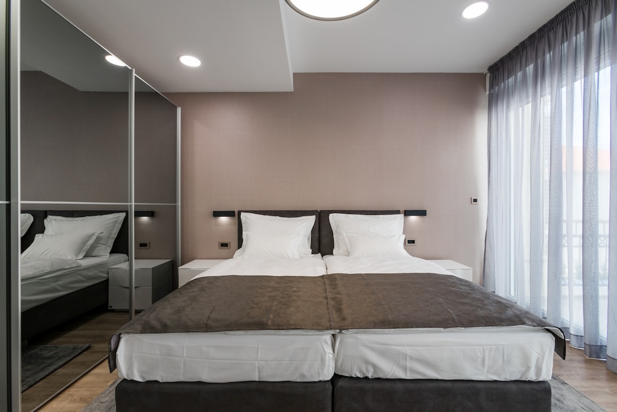 Indulge in a truly luxurious experience and discover our Premium apartment. Premium apartment offers an beautiful view. Explore a massive array of perfected layouts, high-end decor ideas, gorgeous lighting designs, stunning furniture and sumptuous curtains along with some breathtaking architectural feature. The Premium apartment features two bedrooms and bathrooms, with large lounge-dining room, and fully equipped kitchen. Apartment size is 138 m2. Photos of our Resort speak more than words.