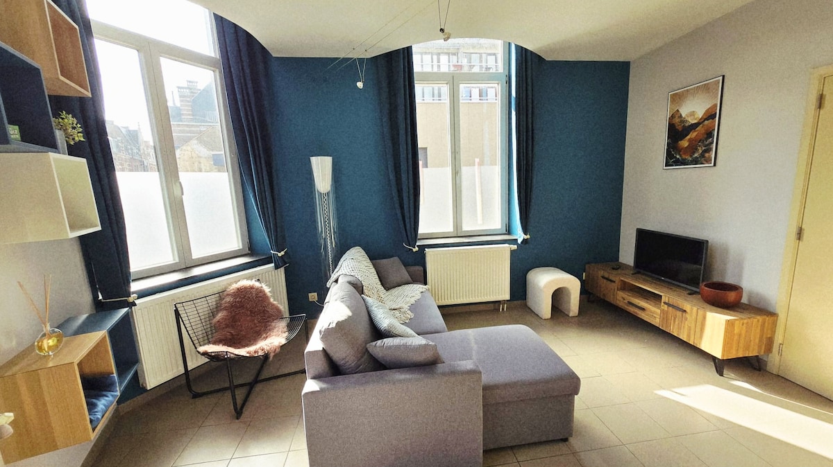 Elegant apartment in the most beautiful area of downtown Liège between the port and boulevard Piercot. The apartment is located next to the Philharmonique and the Conservatoire de Liège. Walking distance to the Opéra Royal de Wallonie and Théâtre de Liège. A short walk away is the stop of the new Liège tram, which is extremely convenient for reaching the entire city center.