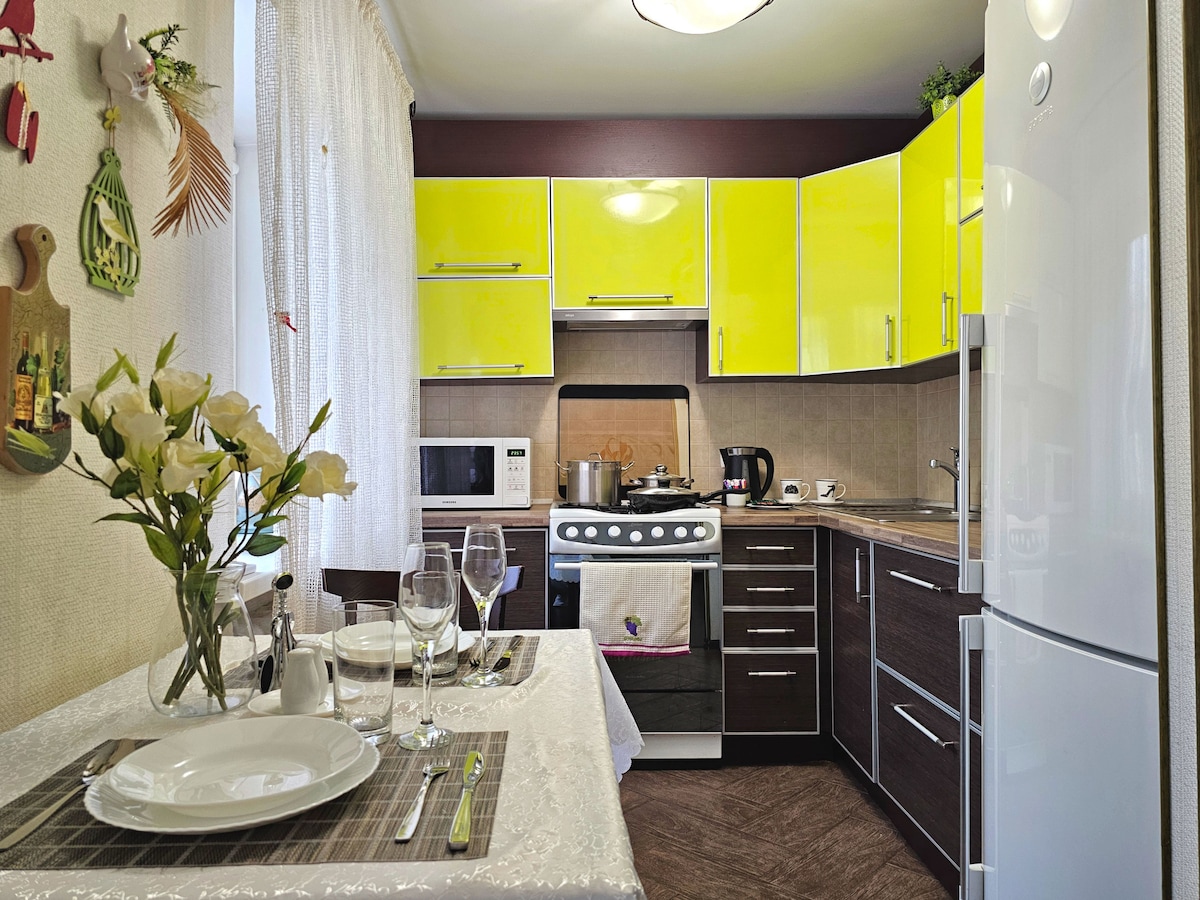 Stylish and comfortable apartments are waiting for you. Located in the very “heart” of the historic city and surrounded by many attractions. Accommodates up to 4 people and has 2 separate sleeping places. The apartment is in the very CENTER of the city!!!! In walking distance to cultural recreation places, architectural monuments, restaurants, cinemas, museums. We guarantee you the full compliance of the apartment with what is shown on the photo.