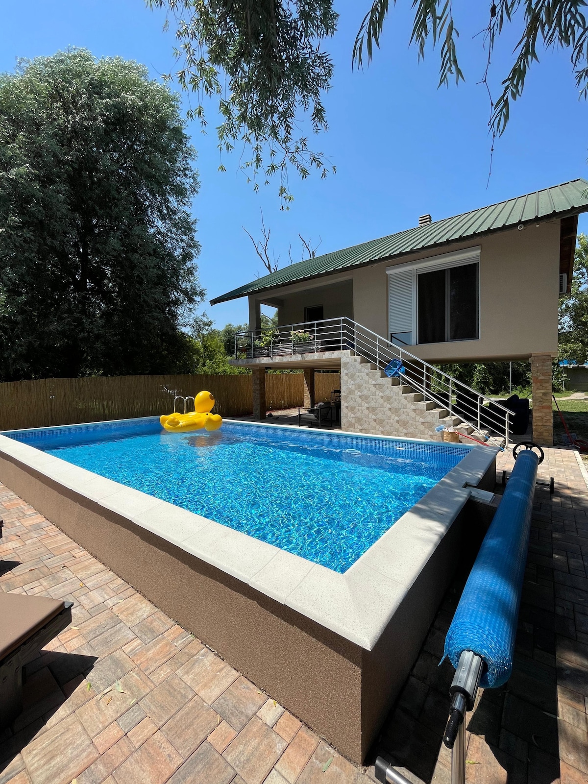 Villa LipaHills with a private swimming pool, sauna, hot tube, garden pavilion, barbecue and lounge area, located in nature by Belgrade with an easy access from highway. It’s ideal for parties or family holidays as well as for a short stay on the way. Stunning nature and view from the hill. The villa is isolated from crowds and noise providing complete privacy. Right after the garden there is a beautiful forest that creates amazing air with a 20-minute walk to the lake.