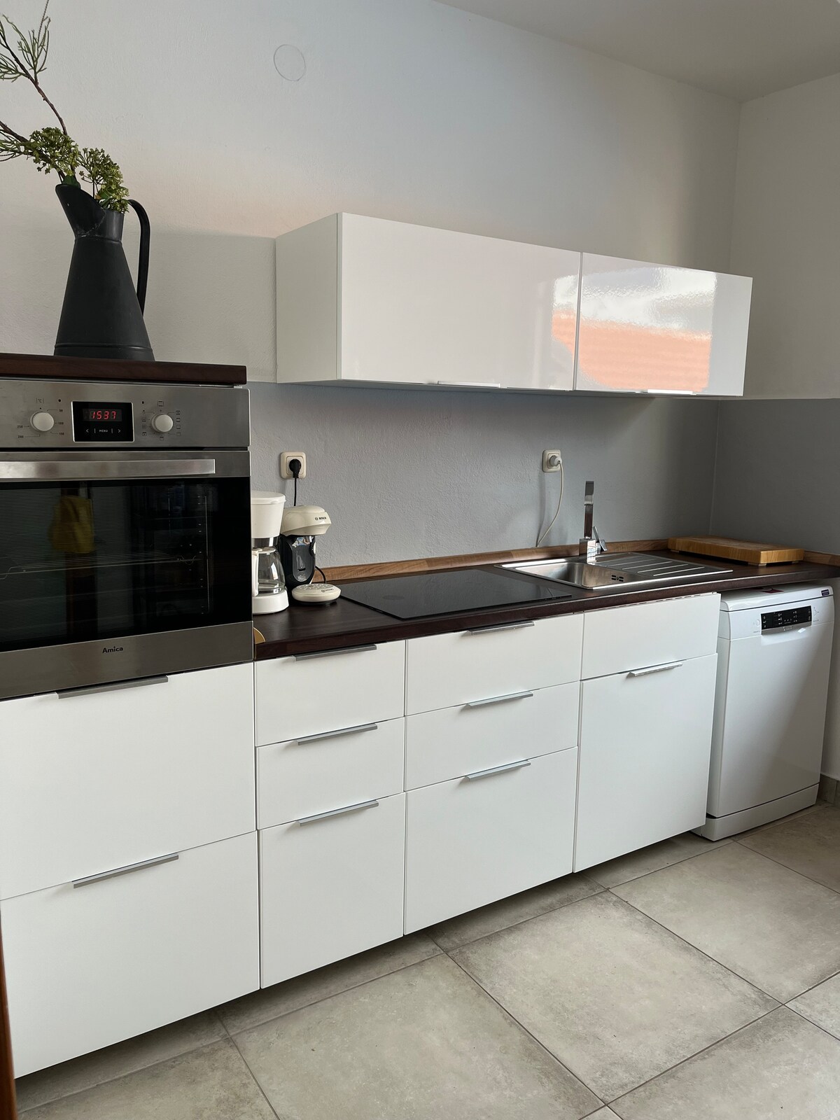 150 m from the sea – ideal for digital nomads! The apartment is 150 meters from the sea and the dog beach. We offer a double room with its own bathroom, a room with two single beds that can be connected if necessary, a kitchen with a dining room and a sofa and a bathroom. On the beautiful spacious terrace there is a set for 4 people and two sun loungers. Air conditioning, linens, towels, and WiFi included in the price.
