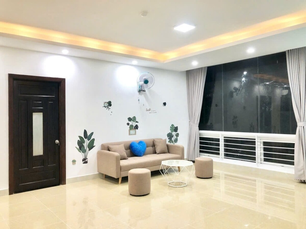 - 200m from the ocean - The apartment has 5* free facilities: infinity pool, children's water park pool, sauna, gym, entertainment room, karaoke, movie, billiards, dartboard, BBQ. - 53m2 house, 2 bedrooms 1 WC, 1 sofa bed - The only 1+ apartment with its own air conditioner in each room - The only apartment with 4K Full HD QLED TV, K+ program, Netflix, Vieon.. - Kitchen with good utensils: rice cooker, frying pan with oven, super speed kettle, electric grill.. - Washing machine with DRYER..