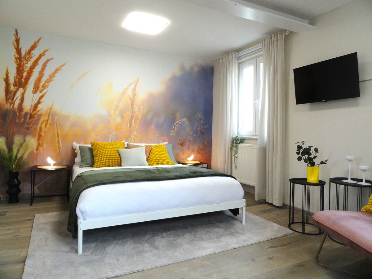 The perfect place to stay for connoisseurs on the wine route! 🍇GREAT location: very quiet, but everything within walking distance 🍇100 m to the vineyards 🍇200 m to the town center with bars, restaurants, wineries 🍇1 km to the Palatinate Forest 🍇Own parking space just 100 m away 🍇Sun balcony with views of the vineyards 🍇Stocked wine fridge 🍇Full kitchen 🍇Super comfortable box-spring bed 180 x 200 cm 🍇High-quality bathroom with skylight 🍇Wi-Fi and smart TV 🍇Coziness meets design