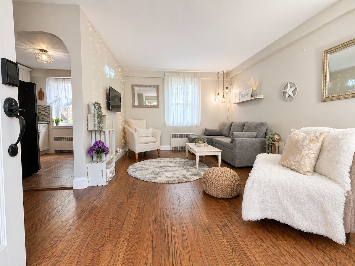 This is a private one-bedroom apartment perfect for a comfortable stay. The unit features a cozy bedroom and a pull-out sofa in the living room, allowing the space to accommodate up to four guests. Enjoy the privacy of your own apartment while being just minutes from New York City, with easy access to transportation, dining, and local attractions. Parking: Street parking is available. Please do not park in the driveway.