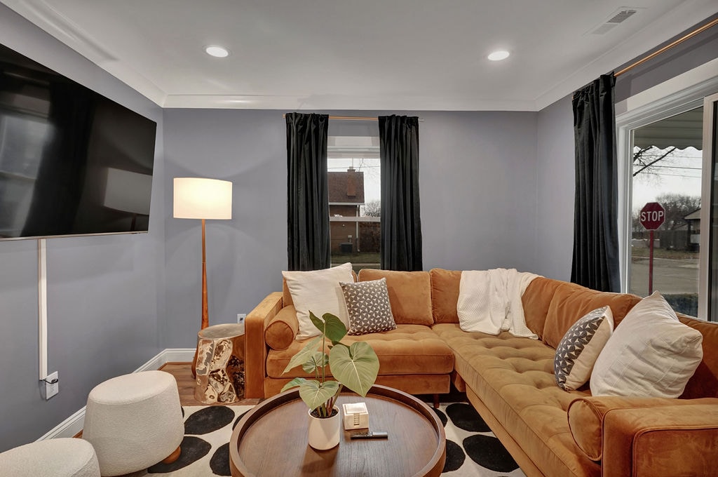 Welcome to Metro-Detroit and our centrally located ranch in the Lamphere district of Madison Heights. Our cozy, stylish home is an ideal place to stay as you explore all that metro Detroit has to offer while visiting for pleasure or for business. This is a 3 bedroom with 2 full bathroom home boasting a bar, game, and entertainment area in the basement. The main floor features an elegant living area with 3 bedrooms, 1 bath, a kitchen, and a dining area.